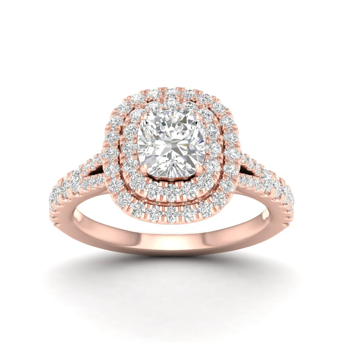 1.90 CTW Cushion Double Halo Lab Grown Diamond Split Shank Ring
