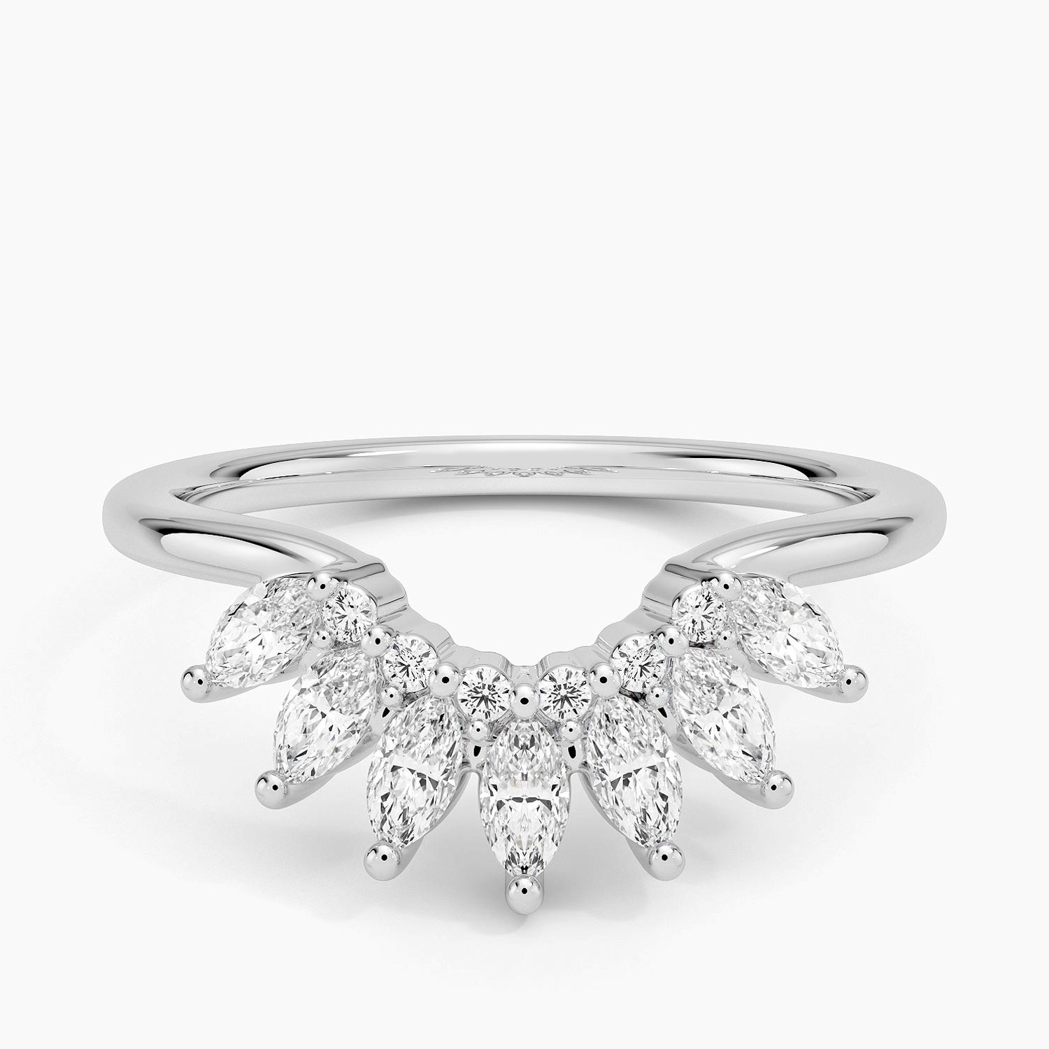 Round And Marquise Cut Lab Grown Diamond Curved Wedding Band