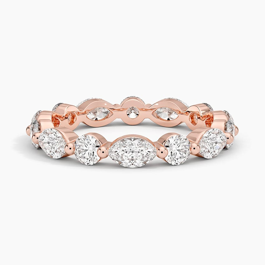 Round Marquise Lab Grown Diamond Alternative 18k Gold Wedding Band